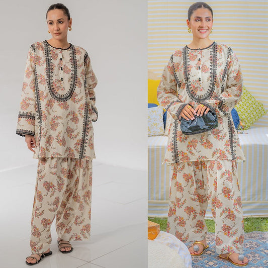 CF1070 -2Pc SUMMER 3Pc Digital Printed SWISS Lawn Shirt With Printed SWISS Lawn Trouser