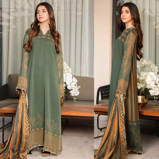 CF1103-Winter Jazmin 3PC Dhanak Embroidered suit with Printed Shawll