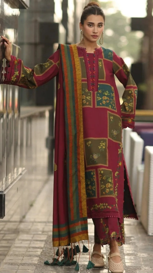 CF1229 Asling Winter 3PC Dhanak suit with Embroidered Shawll